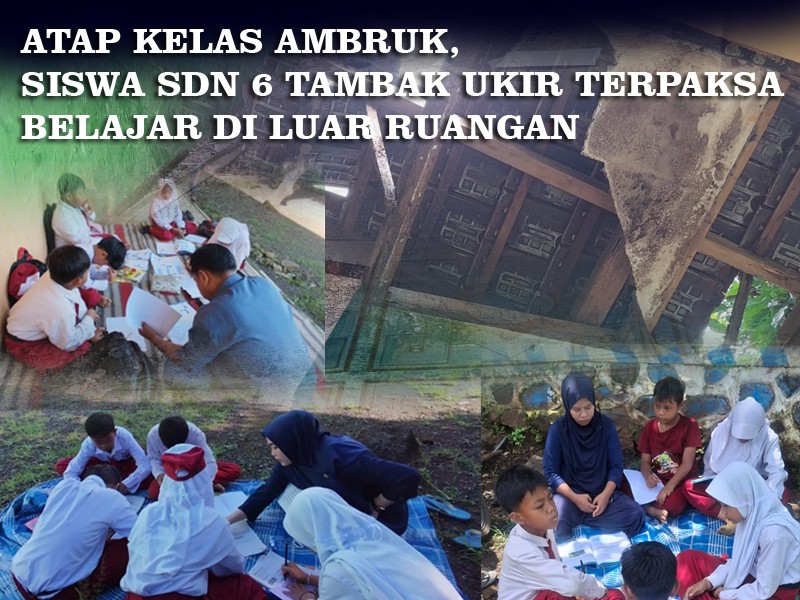 ATAP KELAS AMBRUK, SISWA SDN 6 TAMBAK UKIR TERPAKSA BELAJAR DI LUAR RUANGAN